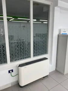 La oficina bancaria en Granada, presentaba una instalación de climatización cuyo fluido caloportador era agua, que no funcionaba correctamente.