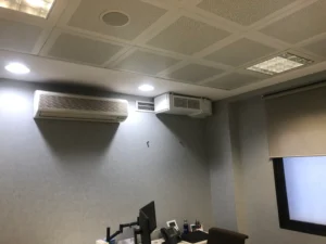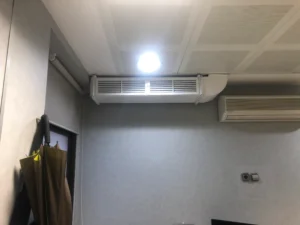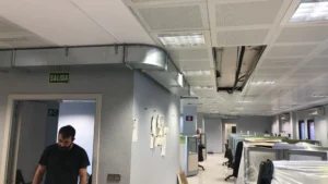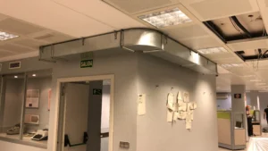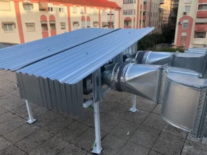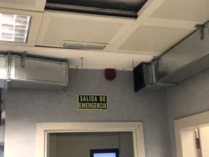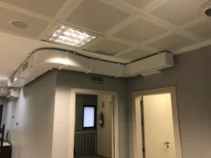 Puesto que el falso techo del edificio era mínimo, se opta por hacer una instalación en conducto de chapa vista.